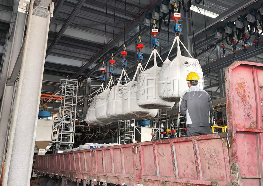 吨袋卸车拆包机实现破包输送成套设备的吊装、称重、固定、整形、破包、取样、拍打、脱钩、回程、输送、收尘等整个流程的高度自动化、智能化稳定运行。
