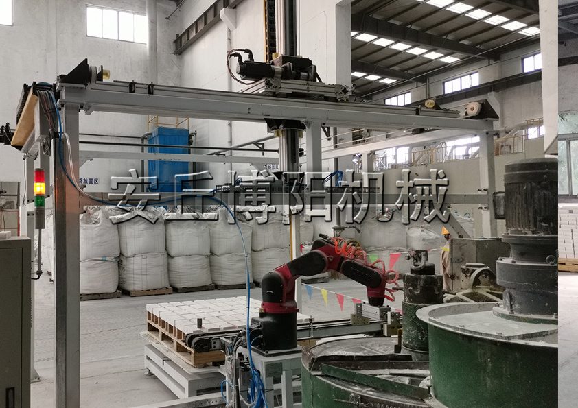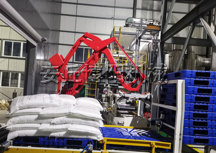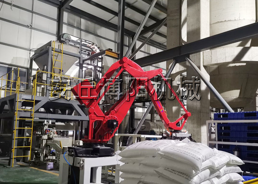 码垛机械手能将不同外形尺寸的包装货物,整齐、自动地码(或拆)在托盘上(或生产线上等)。为充分利用托盘的面积和码堆物料的稳定性,机器人具有物料码垛顺序、排列设定器。可满足从低速到高速,从包装袋到纸箱,从码垛一种产品到码垛多种不同产品。应用于产品搬运、码垛等,广泛应用于化工、塑胶、建材、医药、食品、电池材料等不同领域。
