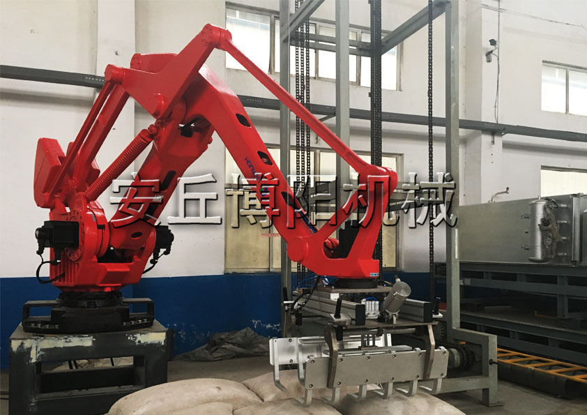 码垛机械手的能力比普通机械式码垛、人力都还要高。结构非常简单,所以故障率低,容易保养,维修。主要构成零件少,配件少,所以维持费用很低。码垛机械手可以设置在狭窄的空间,即可使用。全部控制可在控制柜屏幕上操作即可,操作非常简单。通用性强:通过更换机械手的抓手即可完成对不同货物的码垛及拆垛,相对降低了客户的购买成本。